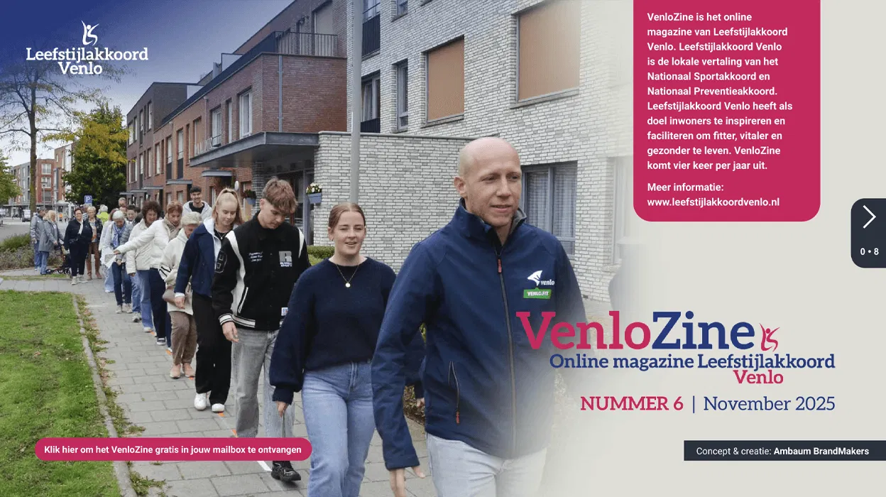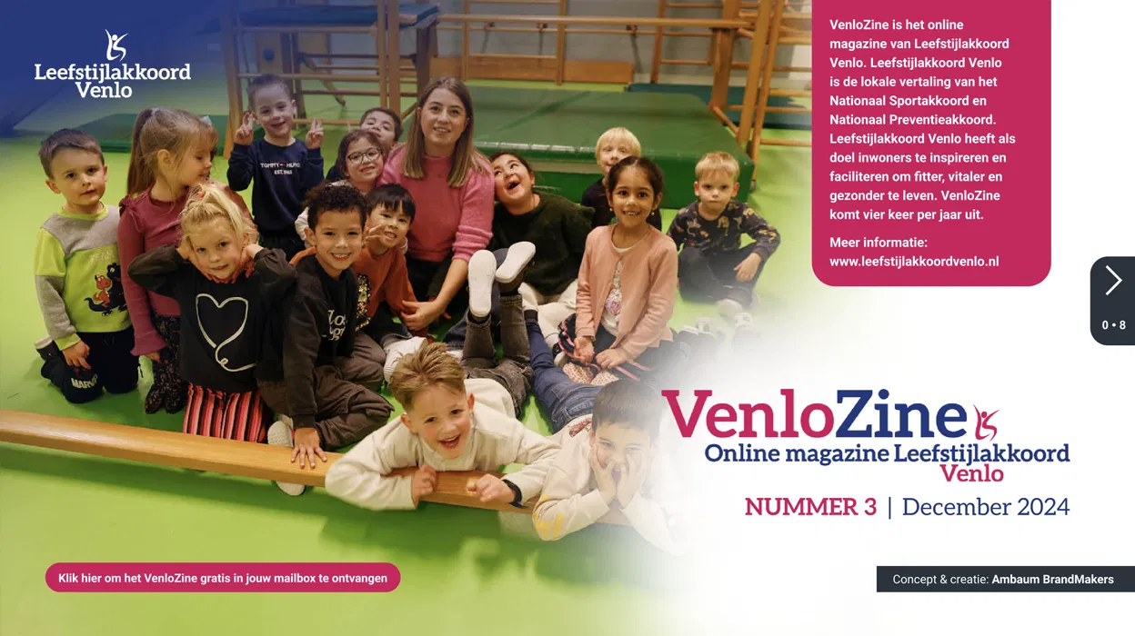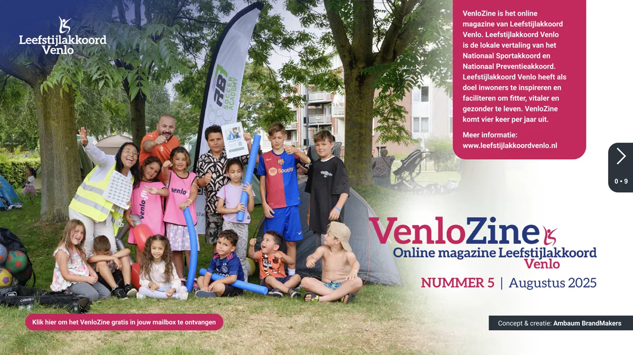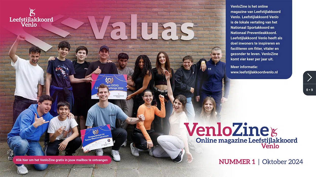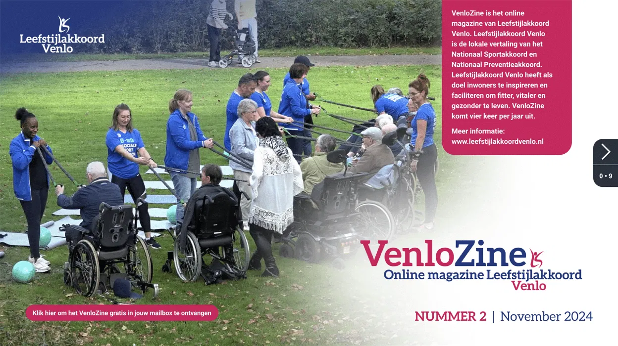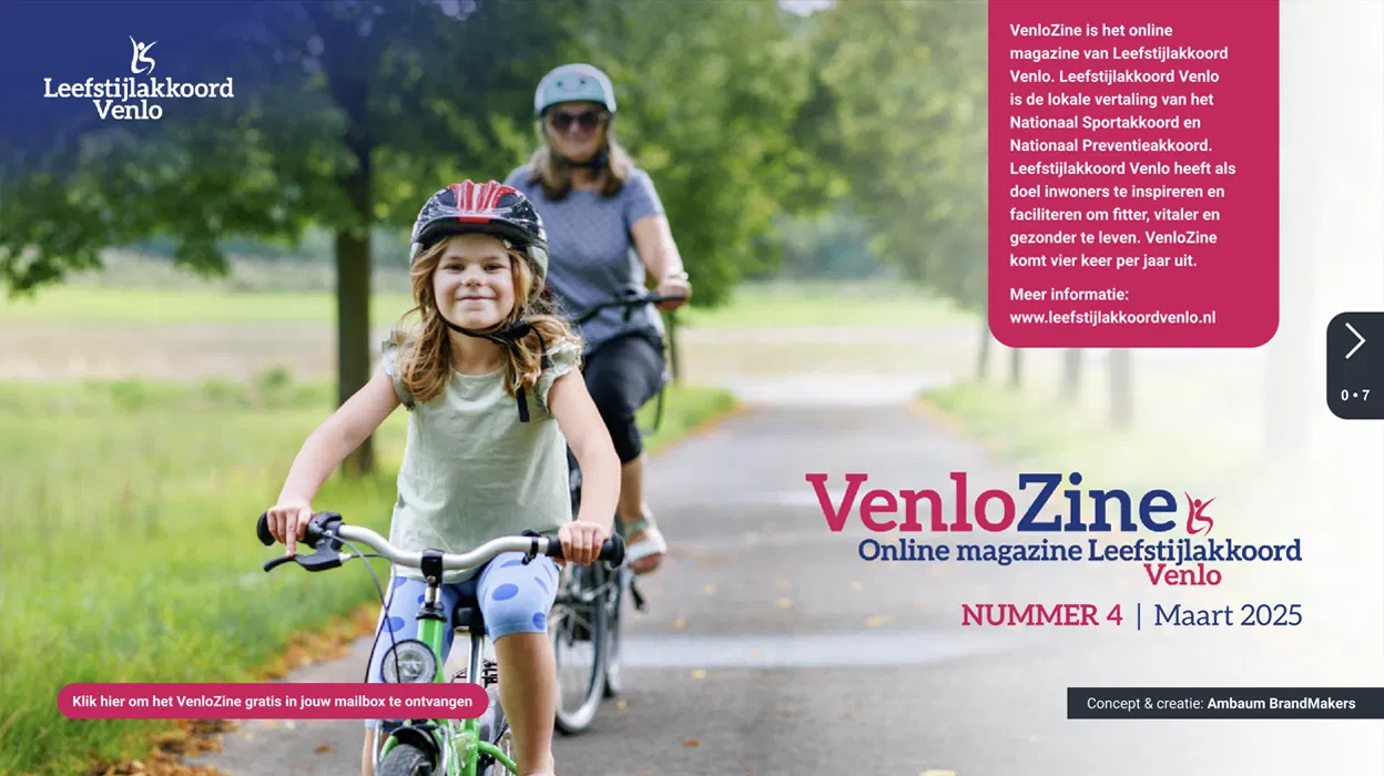 VenloZine is het online magazine van Leefstijlakkoord Venlo. Leefstijlakkoord Venlo heeft als doel inwoners te inspireren en faciliteren om fitter, vitaler en gezonder te leven. VenloZine komt vier keer per jaar uit.